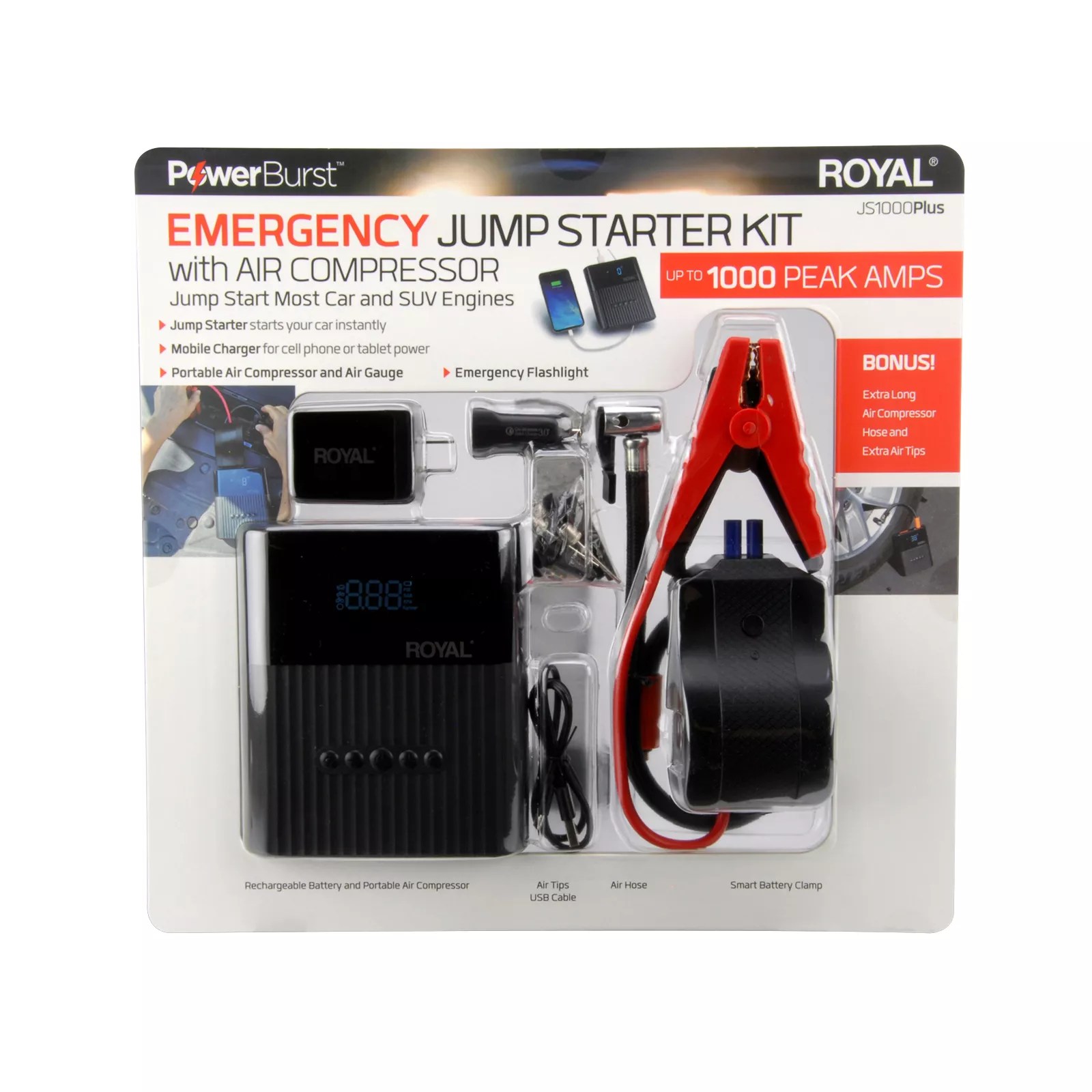 Motor trendtm ultimate jumpstart kit with air compressor, inverter and dual lights, now big bucks off !